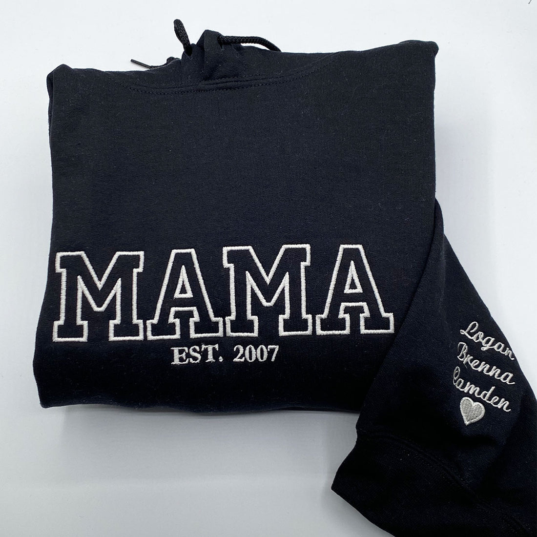 Custom Embroidered Mama Sweatshirts & Hoodies - Personalized with Kid Names on Sleeve Gift