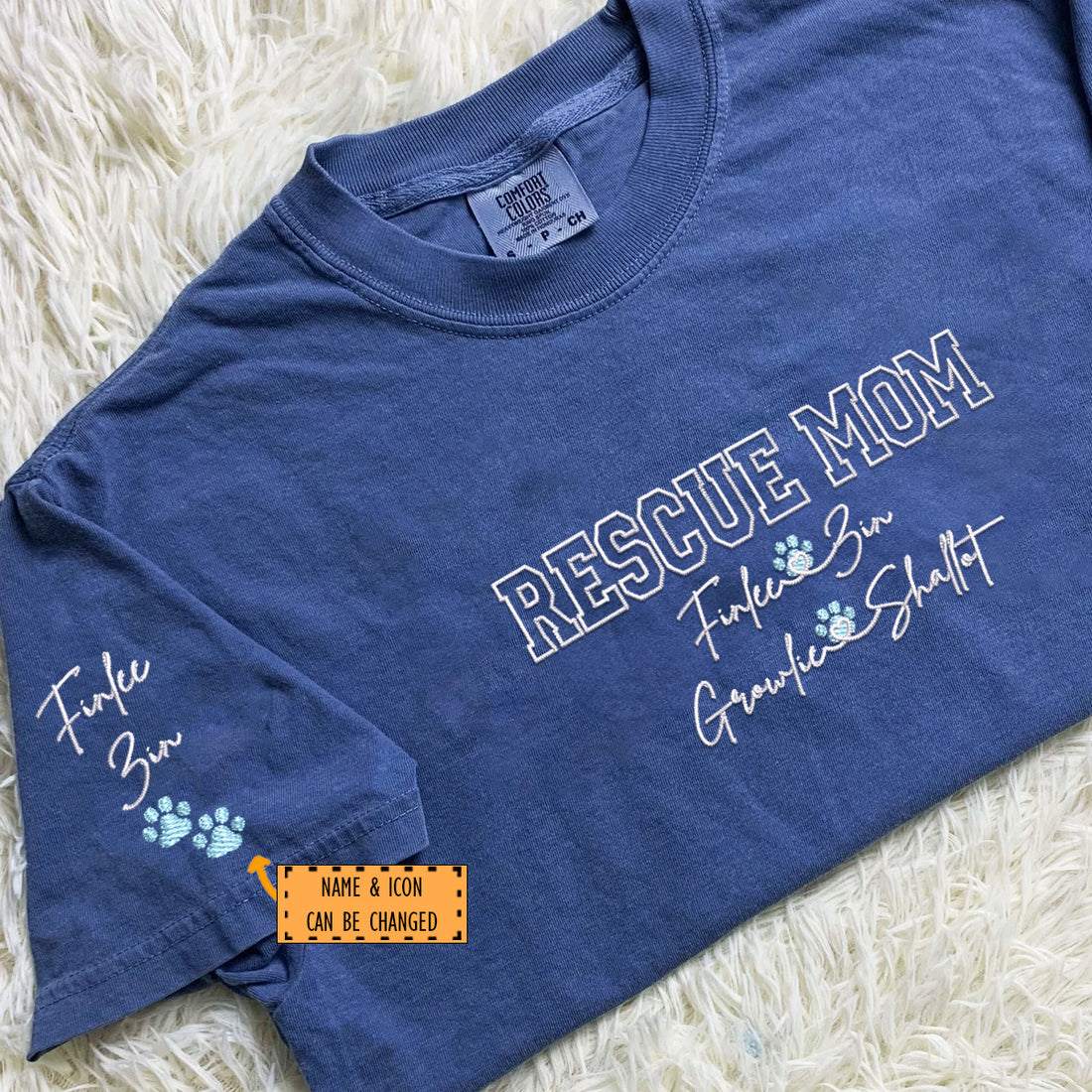 Custom Embroidered Rescue Mom with Names T-Shirt