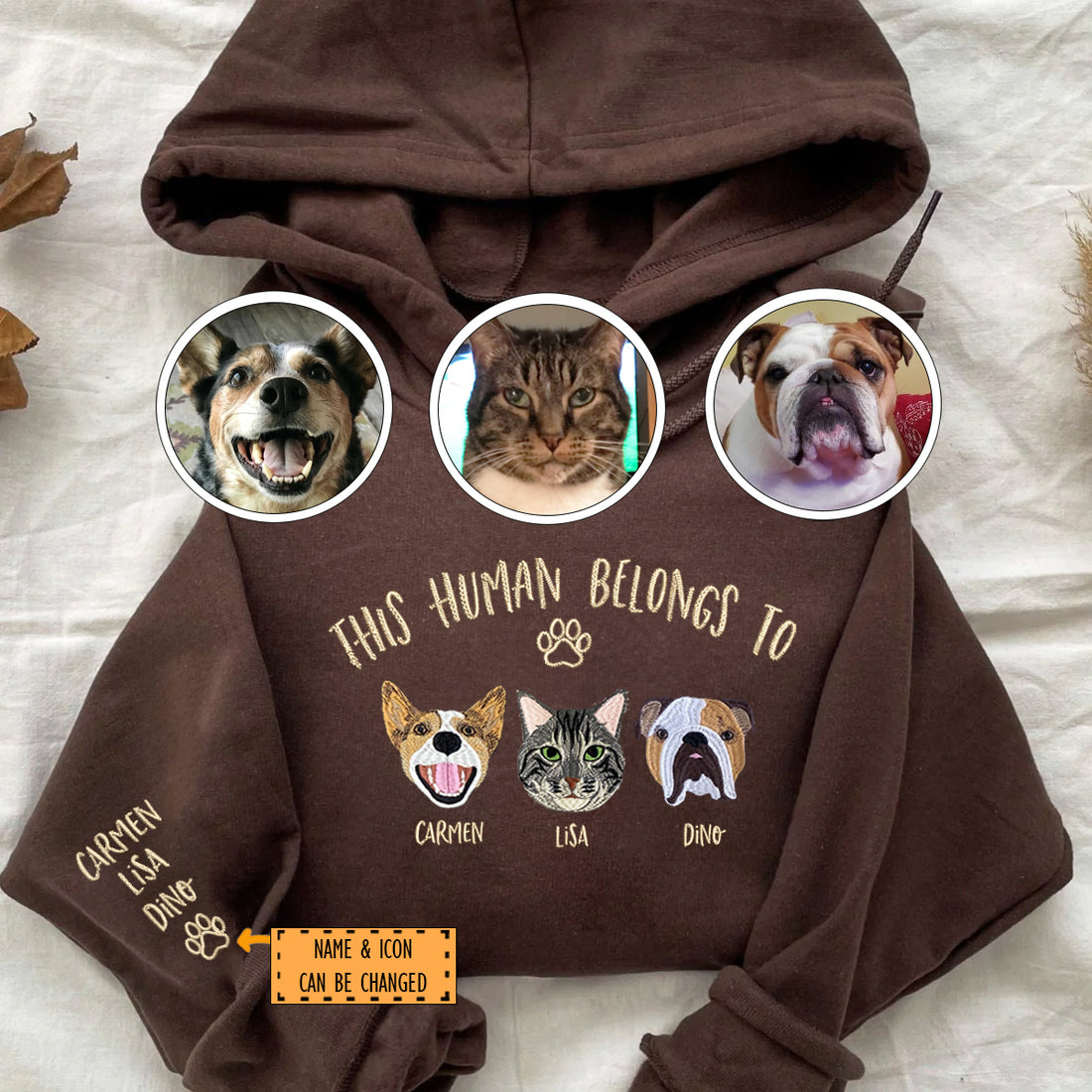 Custom Embroidered Hoodie, This Human Belongs To for Pet Lovers Discover our Custom Embroidered This...