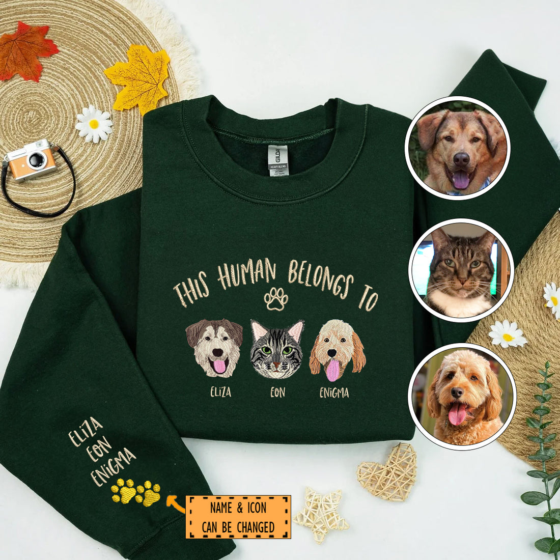 Custom Embroidered Sweatshirt, This Human Belongs To for Pet Lovers Discover our Custom Embroidered This...