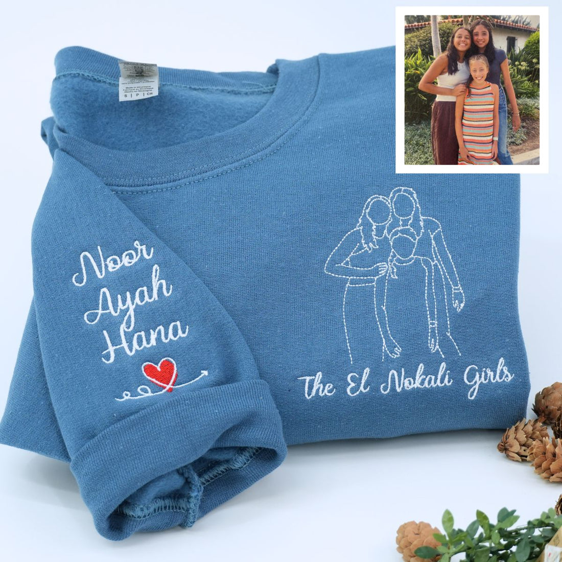 Custom Embroidered Sister Sweatshirt & Hoodie – Personalized Portrait Gift for Sister