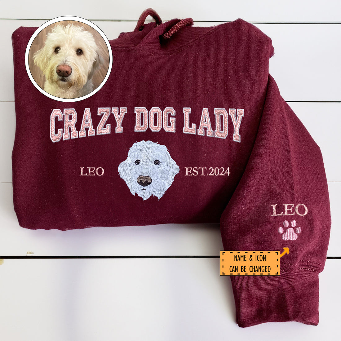 Custom Embroidered Hoodie, Varsity Crazy Dog Lady for Dog Lovers Discover our Custom Embroidered Varsity...
