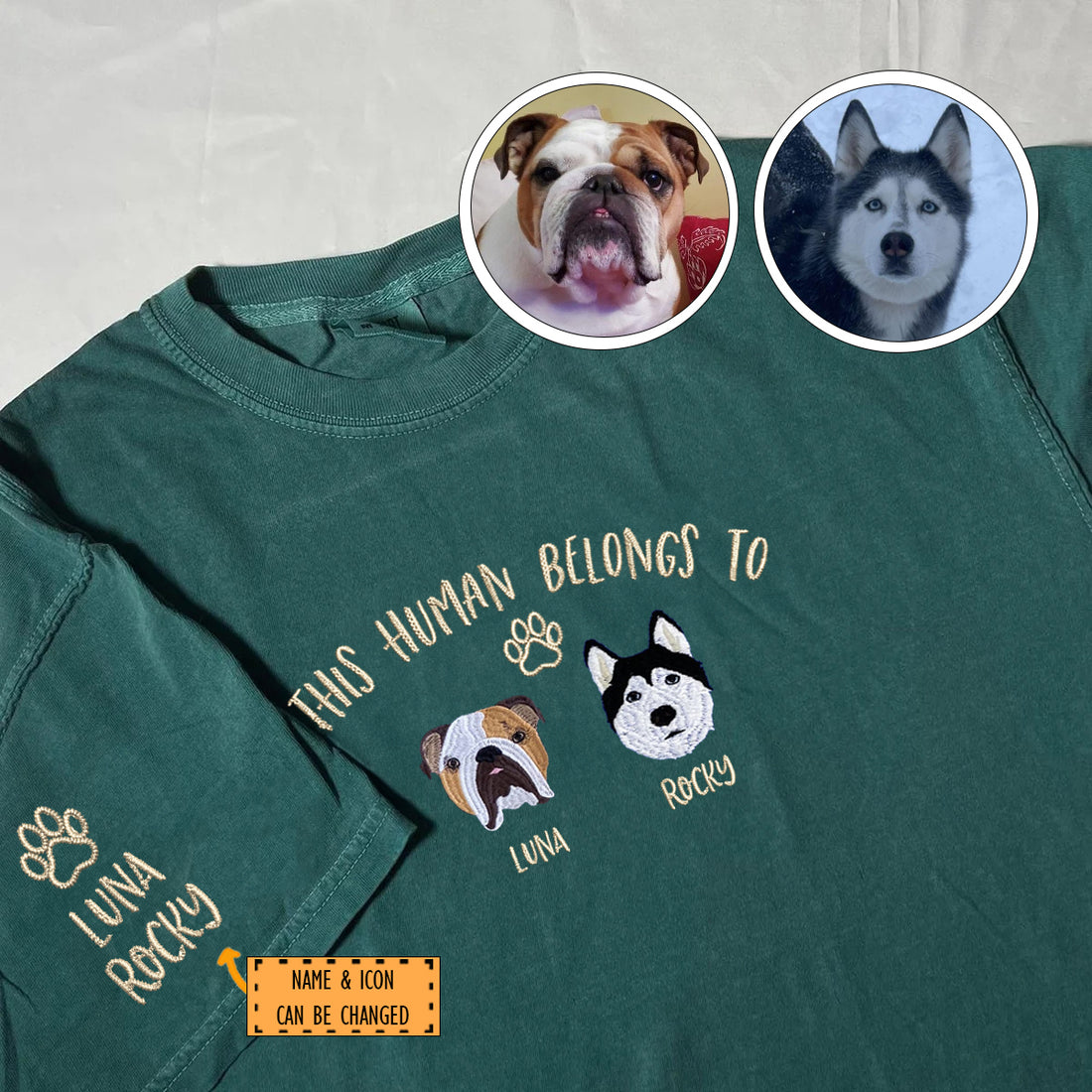 Custom Embroidered T-Shirt, This Human Belongs To for Pet Lovers Discover our Custom Embroidered This...