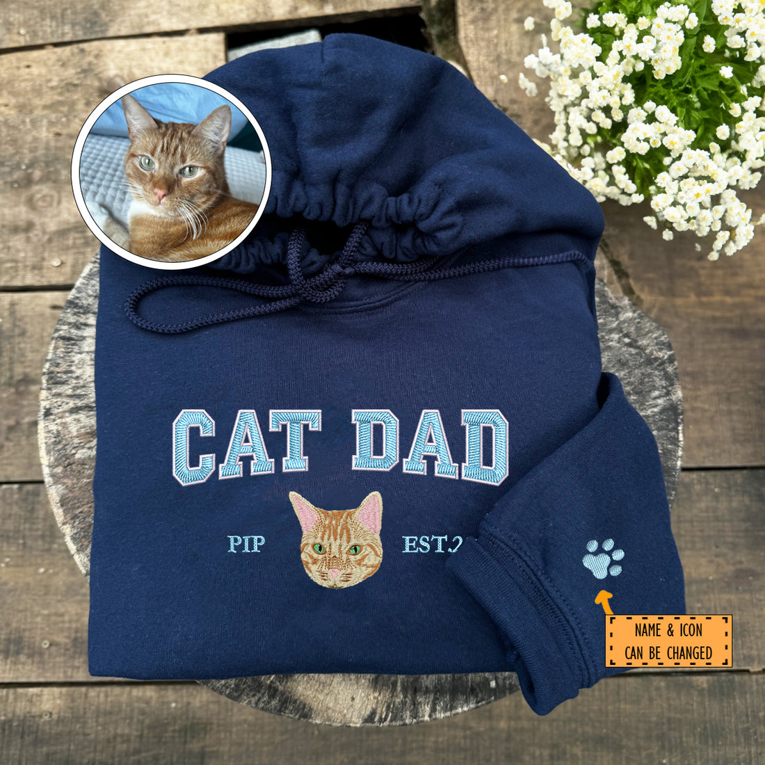 Custom Embroidered Hoodie, Varsity Cat Dad for Cat Lovers Discover our Custom Embroidered Varsity Cat...