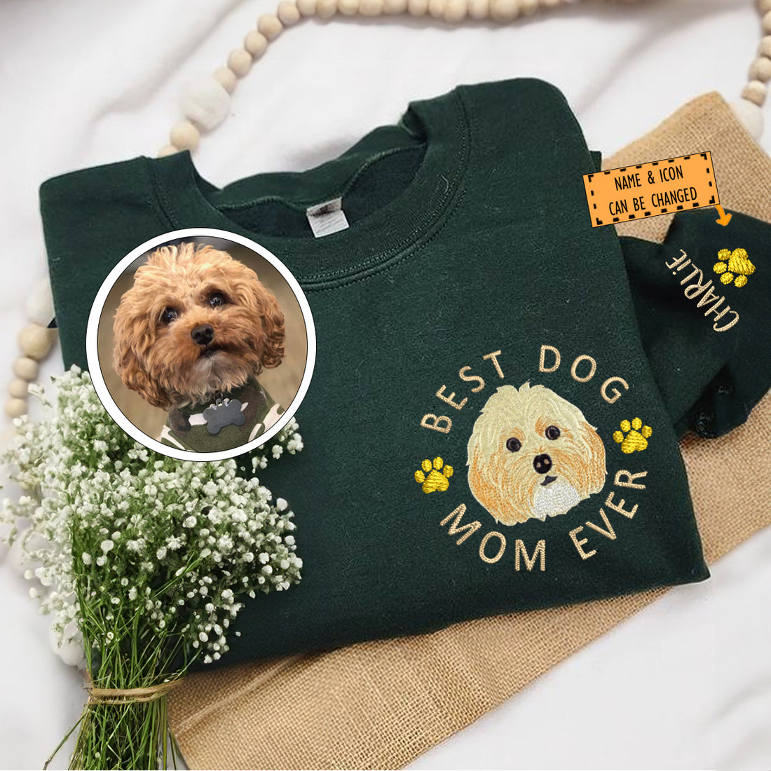 Custom Embroidered Sweatshirt, Best Dog Mom Ever for Dog Lovers Discover our Custom Embroidered Best...