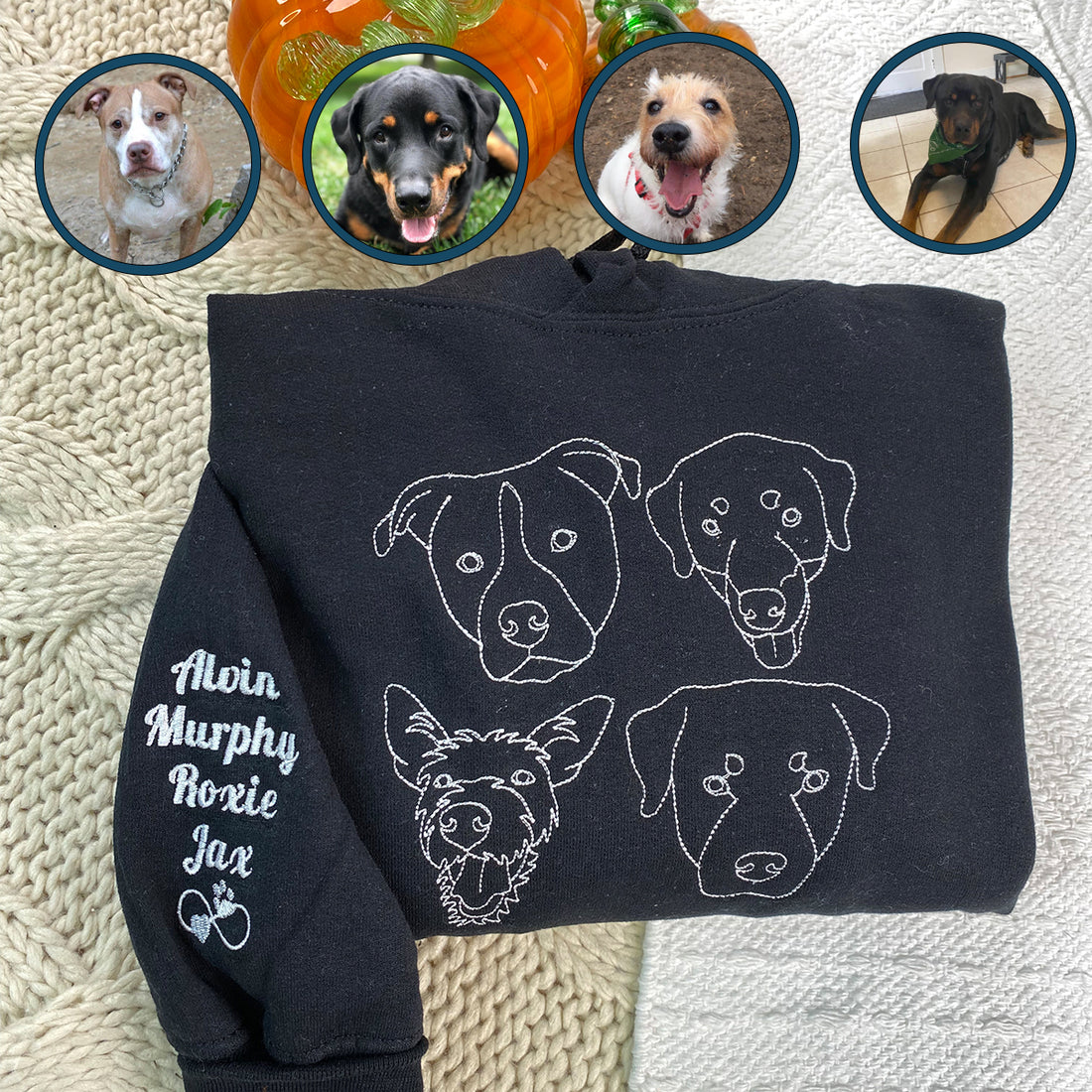 Custom Embroidered Dog Face Sweatshirt Hoodie - Personalized Pet Photo & Name on Sleeve